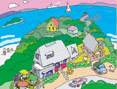 ここで焼かれた高品質の竹炭。様々な形と機能をもつ竹炭セラミック。かわいいアクセサリー。絵画から食品まで、文字通り五感に働きかけ、心身の健康を取り戻すためのグッズが勢ぞろい。時にはお茶を飲みながら歌やピアノの生演奏を聴く幸せも味わえます。木漏れ日の中から聞こえてくる小鳥のさえずり、波の音。遠く海に浮かぶ島々と、ゆっくり行き交う船。そんな風景に囲まれて、ホピ村の時は流れています。