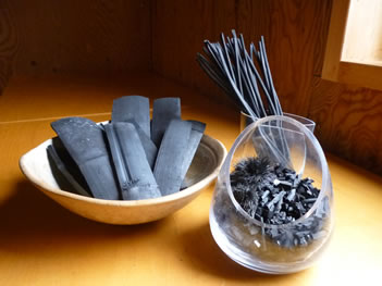 竹炭と竹酢液、竹炭セラミックは、消臭や抗菌作用のみならずあらゆるものの浄化を促し、気を整え、場所や人、動植物にエネルギーを与えます。また静電気を防止したり、人体に影響が取り沙汰される携帯電話やパソコン、テレビなどの電磁波を吸収します。 ※竹炭による、土地、建物、お部屋の浄化、エネルギー改善など、ご相談に応じます。 |